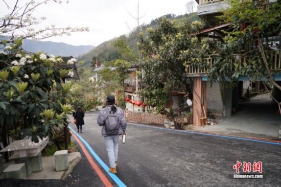 位于半山腰的石椅村也被稱為“云朵上的山寨”。此前,村里的交通不算便利,升級(jí)改造后的道路拓寬到10米左右,不僅路面鋪上了瀝青,還劃出了彩色步道,游客漫步其中,仿佛置身天然氧吧。