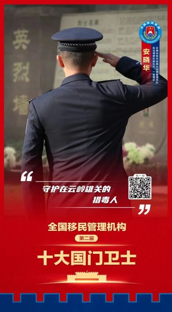 10名來(lái)自邊防檢查和邊境管理一線的移民管理警察被表彰為全國(guó)移民管理機(jī)構(gòu)第二屆十大國(guó)門衛(wèi)士,并榮記個(gè)人一等功。他們分別是: