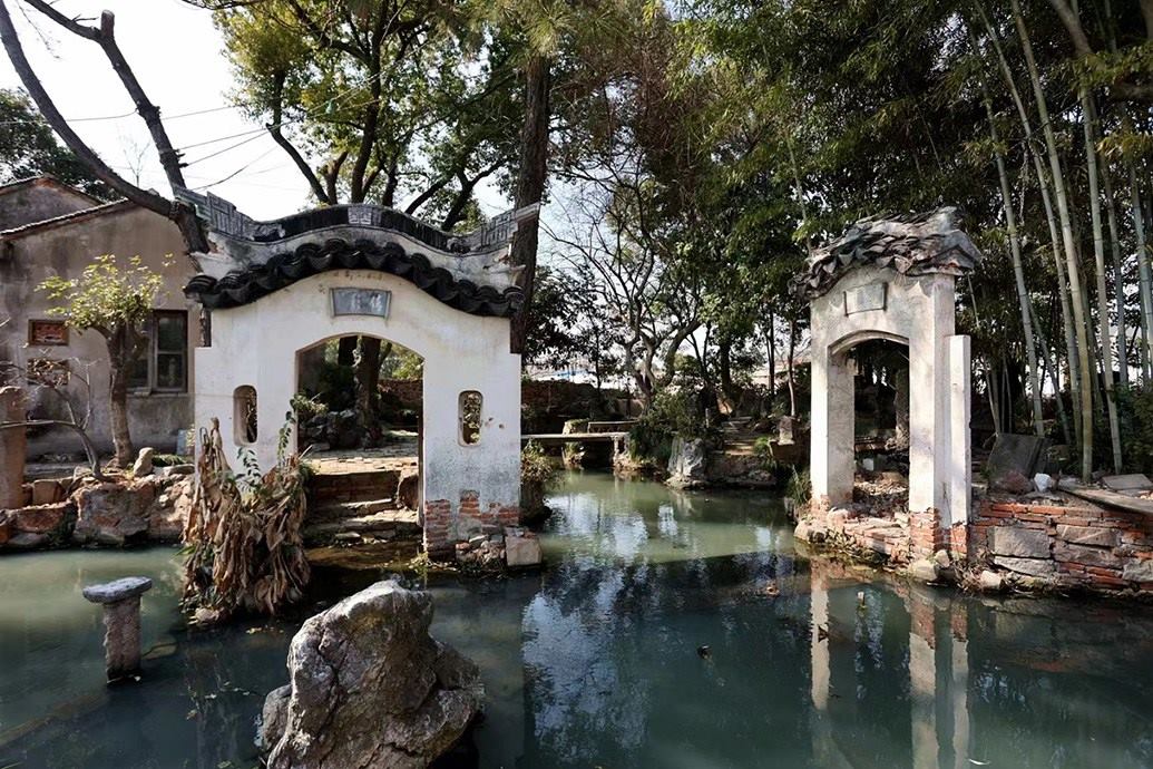 初見影園,第一眼并不算驚艷。斑駁的紅磚外墻、90年代常見的用以防盜的玻璃碎片扎進(jìn)墻頭邊沿,似乎就是鄉(xiāng)村里最普通的宅院,很難和蘇州園林扯上關(guān)系。不過,一推開門,影園就開始不動(dòng)聲色地“顯山露水”。