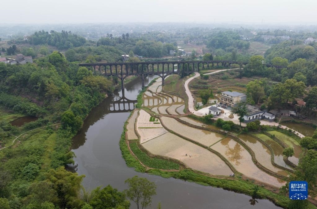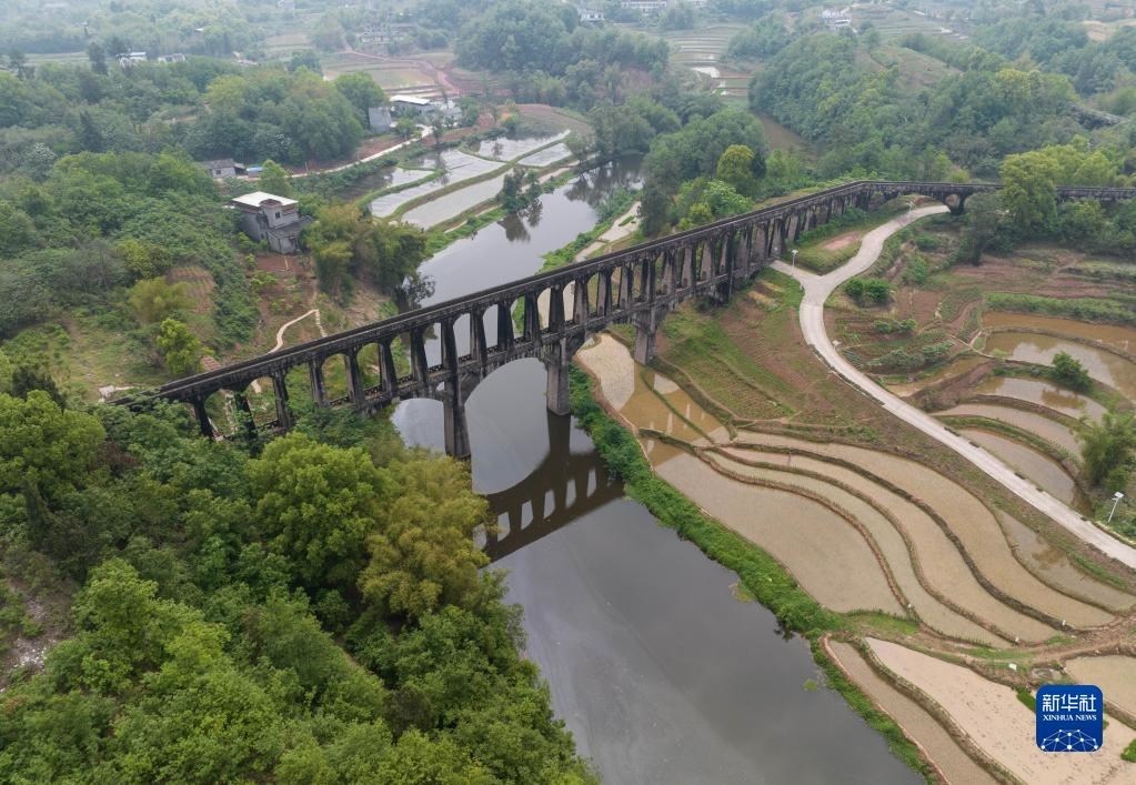 目前,四川省瀘縣正值插秧時節(jié),有“人工天河”之稱的瀘縣引水渡槽越過山丘、穿過農田,仍在引水灌溉中發(fā)揮重要作用。