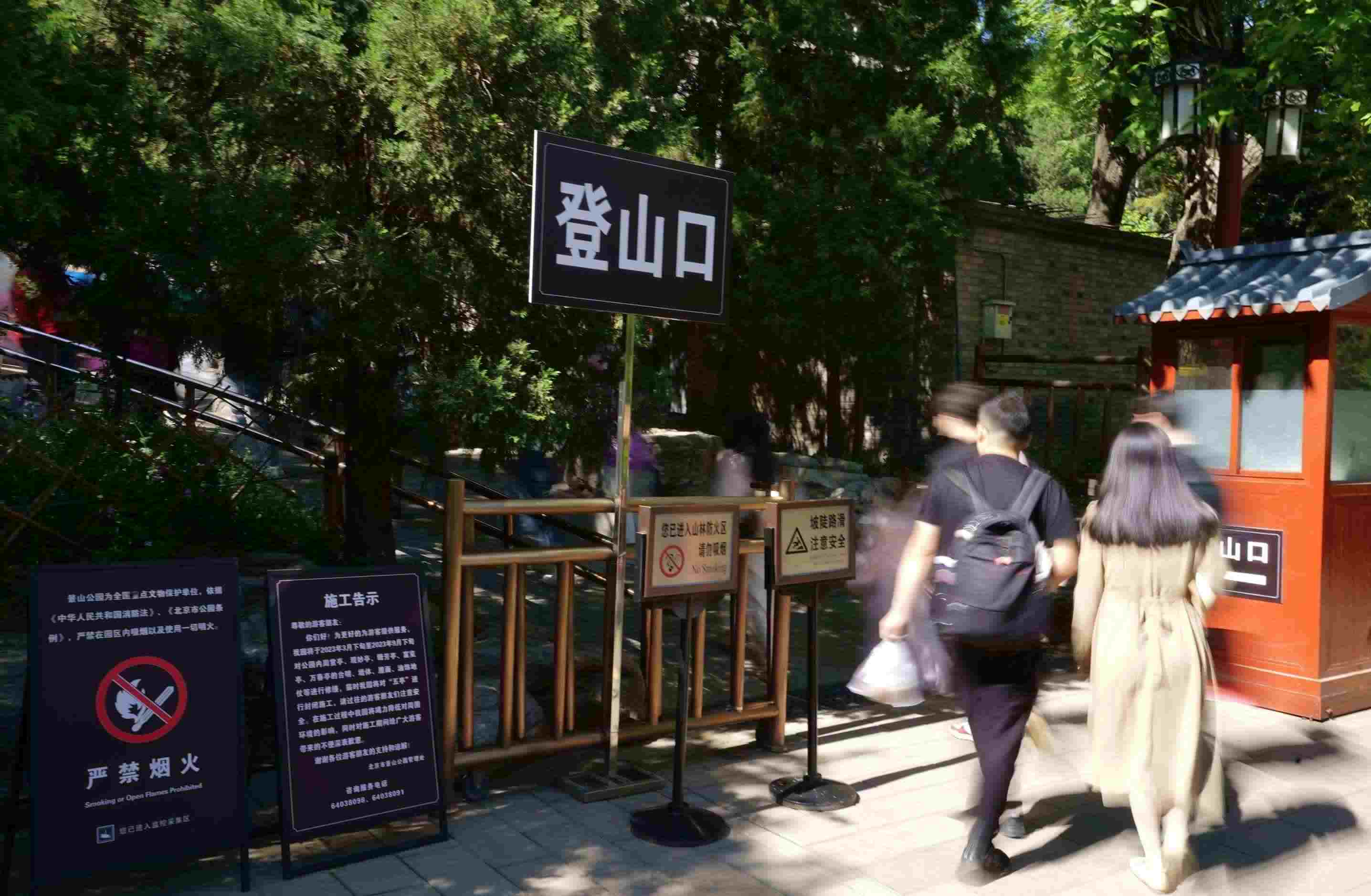 “請大家提前準(zhǔn)備好身份證,老年卡、年卡游客走這邊?!苯裨?時(shí),在景山公園東門,記者看到,公園細(xì)化了門區(qū)入園通道,開設(shè)了老年卡專道,分設(shè)了預(yù)約入園通道,在工作人員的引導(dǎo)和提醒下,游客分道、有序入園。