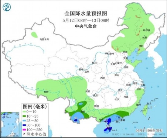 全國降水量預(yù)報圖(5月12日08時-13日08時)