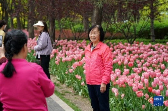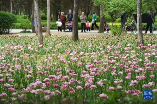 近日,山西省太原市迎澤公園內(nèi)各色郁金香競(jìng)相綻放,吸引游人前來(lái)觀(guān)花賞景。