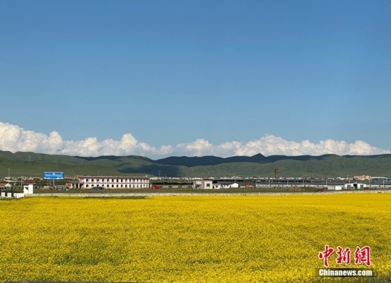 行駛途中,微風(fēng)送來(lái)陣陣清涼。從車窗向外望去,高低起伏的沙丘已被樟子松、側(cè)柏覆蓋,披上了片片新綠,間或有盛開的黃色檸條花點(diǎn)綴其間,如繁星點(diǎn)點(diǎn)裝扮著這片土地。