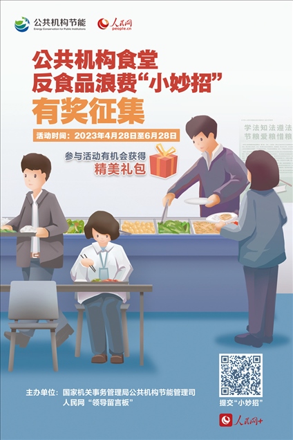 “推出小份菜”“飯菜稱(chēng)重計(jì)價(jià)”“借助大數(shù)據(jù)合理備餐”……公共機(jī)構(gòu)食堂反食品浪費(fèi),你還有什么“小妙招”?4月28日起,國(guó)家機(jī)關(guān)事務(wù)管理局公共機(jī)構(gòu)節(jié)能管理司、人民網(wǎng)通過(guò)“領(lǐng)導(dǎo)留言板”聯(lián)合推出“公共機(jī)構(gòu)食堂反食品浪費(fèi)‘小妙招’有獎(jiǎng)?wù)骷被顒?dòng),面向全社會(huì)征集黨政機(jī)關(guān)、學(xué)校、醫(yī)院等公共機(jī)構(gòu)食堂反食品浪費(fèi)的妙招、實(shí)招、硬招?;顒?dòng)推出后,各地群眾積極建言獻(xiàn)策,一起來(lái)看看吧!