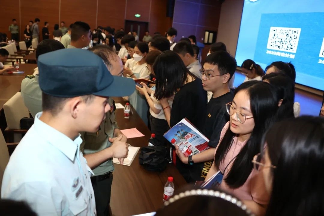 從“政治榮譽(yù)高、與國家命運(yùn)聯(lián)系緊”,到“福利待遇優(yōu)、地域環(huán)境好”,各院校人力資源干事坦率真誠的介紹得到了現(xiàn)場學(xué)生們的肯定?!斑@次來到學(xué)校,就是想告訴大家,當(dāng)前文職人員隊(duì)伍還有部分缺額,是青年學(xué)子干事創(chuàng)業(yè)的好機(jī)遇,發(fā)展前景十分廣闊……”陸軍政治工作部文職人員局領(lǐng)導(dǎo)的一番話,點(diǎn)燃了高校學(xué)子投身國防的熱情。