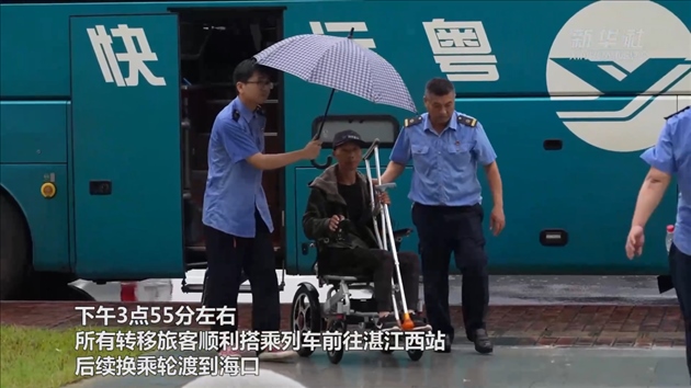 下午3點55分左右,所有轉(zhuǎn)移旅客順利搭乘列車離開前往湛江西站,后續(xù)換乘輪渡到海口。