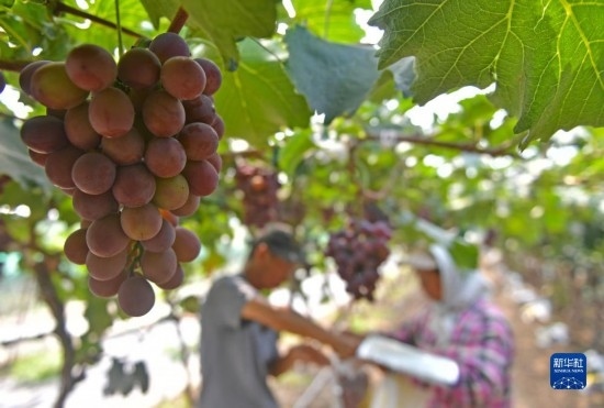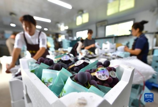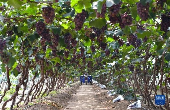 近日,遼寧省燈塔市種植的遼峰葡萄喜迎豐收。燈塔市出產(chǎn)的遼峰葡萄遠近聞名,目前種植面積約1萬畝。當?shù)匾研纬善咸雅嘤⒎N植、銷售、倉儲、加工相關產(chǎn)業(yè)鏈,葡萄是當?shù)剞r(nóng)民致富增收的特色產(chǎn)業(yè)。