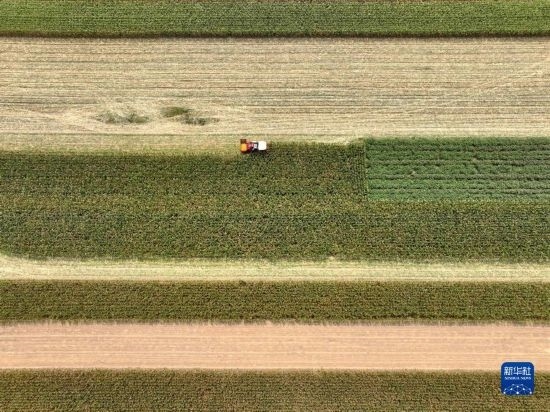 金秋時(shí)節(jié),各地農(nóng)民搶抓晴好天氣忙收獲,田間地頭一派繁忙景象。新華社發(fā)(孫中喆 攝)