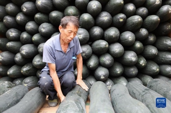 9月13日,村民在貴州省黔東南苗族侗族自治州施秉縣城關(guān)鎮(zhèn)白塘村將收獲的冬瓜裝車(chē),準(zhǔn)備供應(yīng)市場(chǎng)。