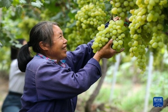 9月14日,果農(nóng)在貴州省開(kāi)陽(yáng)縣南江鄉(xiāng)龍廣村水果種植基地采摘醉金香葡萄。