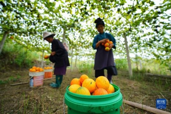 9月14日,農(nóng)民在河南省駐馬店市驛城區(qū)諸市鎮(zhèn)石莊村獼猴桃種植園采摘獼猴桃。