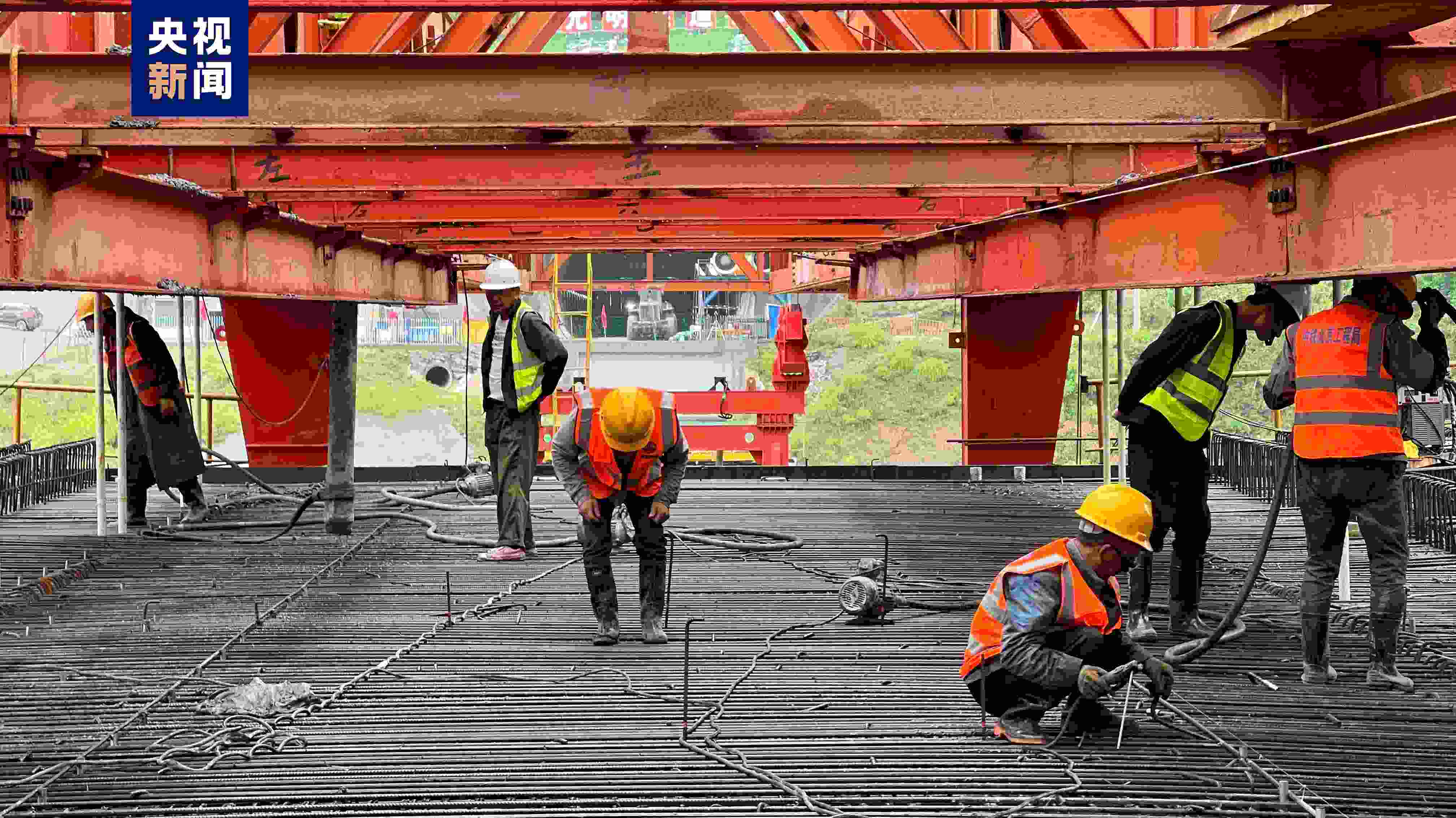 河水壩大橋位于重慶市開州區(qū)巫山鎮(zhèn)河龍村北側,橋址跨越河谷地形起伏較大,植被茂密,水面寬約12米,橋址地層巖性主要為軟塑狀粉質黏土,層厚約2.1米,具有承載力低、壓縮性高、厚度分布不均等特點,地質條件較為復雜。本次澆筑成功的是河水壩大橋首孔現(xiàn)澆梁,經(jīng)過施工人員連續(xù)10小時的奮戰(zhàn),孔長32m,高3.03m,重約900t的移動模架現(xiàn)澆梁順利完成混凝土澆筑。據(jù)中鐵北京工程局成達萬高鐵項目一工區(qū)經(jīng)理烏小平介紹:“河水壩大橋首孔現(xiàn)澆梁采用移動模架現(xiàn)澆法施工,制梁具有機械化程度高、靈活性強、節(jié)約人力成本、施工周期短、使用輔助設備少、重復利用性高等特點,既保證了工程質量,又能加快施工進度,具有良好的經(jīng)濟效益?!币苿幽<墁F(xiàn)澆法施工有效解決了控制性工程長大隧道架梁機無法及時架梁的問題,縮短了整體工期,確保項目按期順利推進。