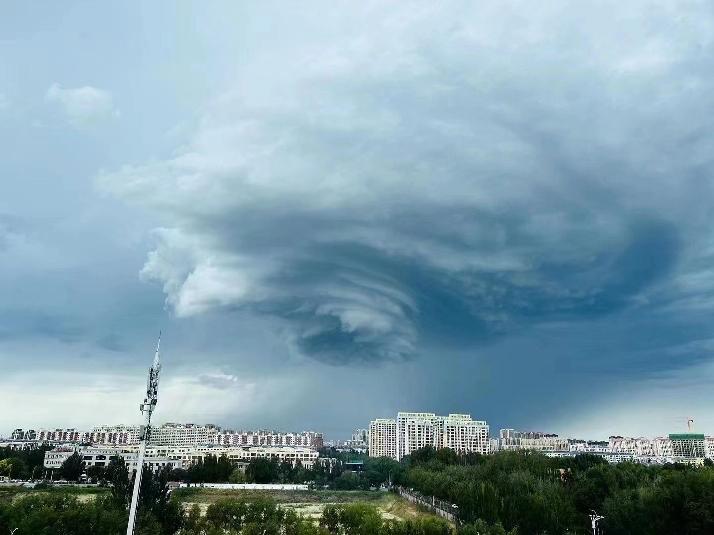 7月6日14時左右,通遼市科爾沁區(qū)上空出現(xiàn)超級單體風暴,只見巨型氣旋籠罩在上空,直逼地面,猶如電影特效,不少市民被這壯觀的景象震撼到。