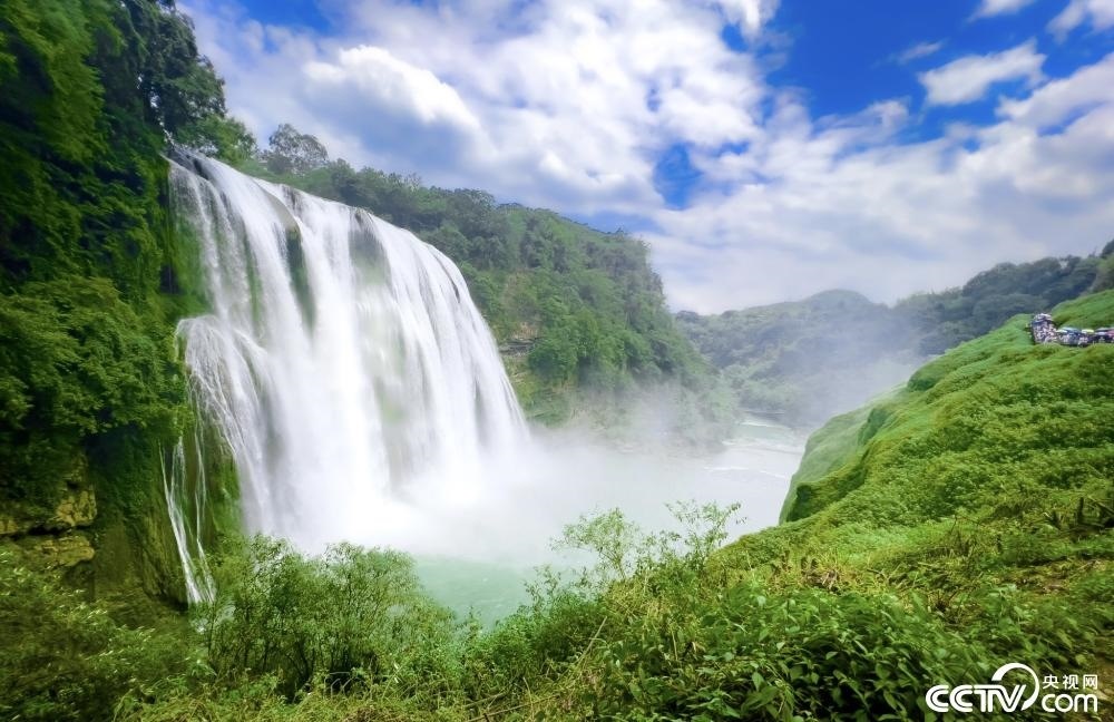 貴州安順,鎮(zhèn)寧布依族苗族自治縣黃果樹(shù)瀑布水霧升騰。
