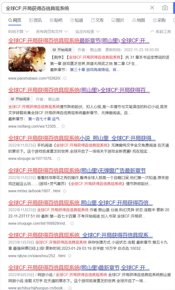 記者查詢發(fā)現(xiàn),除了擅自“續(xù)寫(xiě)”之外,網(wǎng)絡(luò)文學(xué)被盜版網(wǎng)站通過(guò)技術(shù)手段“爬取”的現(xiàn)象十分常見(jiàn)。以作品名為關(guān)鍵詞搜索,只有前幾條能導(dǎo)向正版網(wǎng)站,其余都是盜版,原創(chuàng)作者維權(quán)困難。