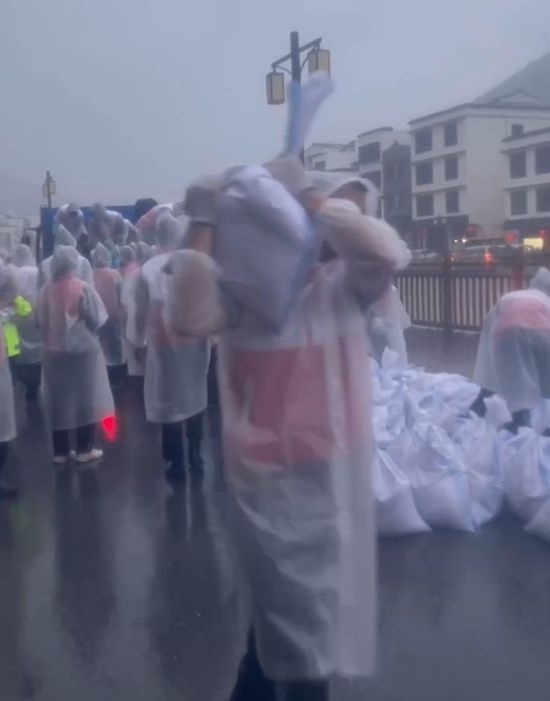 “加快速度裝好沙包!”“一個(gè)一個(gè)往后傳!”按照錢排鎮(zhèn)政府的統(tǒng)一部署,在保證安全的前提下,200余名學(xué)生志愿者參與沙袋填裝、搬運(yùn)和堆疊等臺(tái)風(fēng)防御工作。