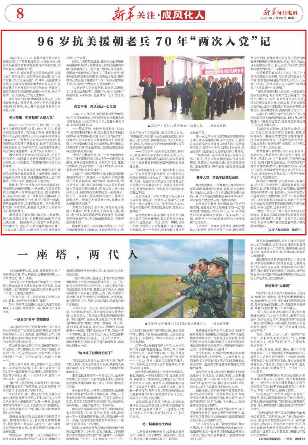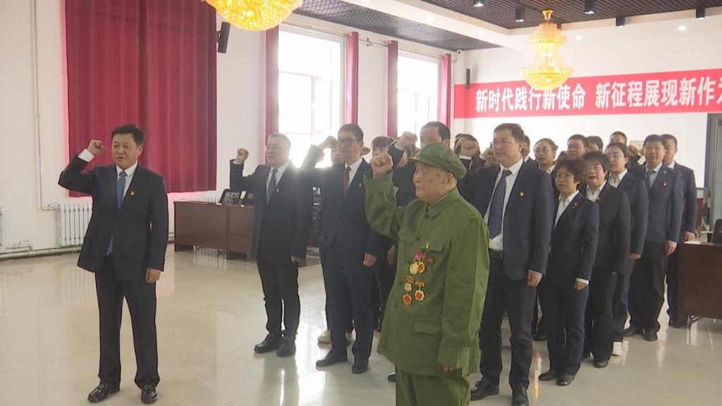 2023年4月6日,霍林河煤業(yè)集團有限責(zé)任公司(以下簡稱霍煤集團)大樓會議室,96歲老兵顧克明在鮮紅黨旗前再次舉起右拳,莊嚴(yán)宣誓加入中國共產(chǎn)黨。
