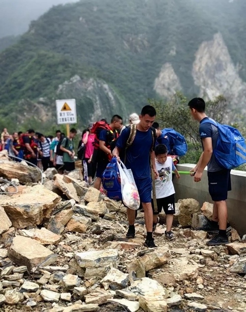 10多個(gè)消防官兵專門(mén)護(hù)送他們撤離,走過(guò)懸崖邊時(shí),消防官兵拿桿子擋在外面,再用身體連成一堵墻,以防他們掉下去。有的學(xué)生邊走邊說(shuō),“這次回去寫(xiě)作文的素材有了,這才是真正的大場(chǎng)面。”