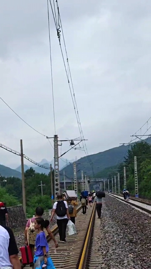 聽(tīng)探過(guò)路的乘客說(shuō),目前有公路、鐵軌、山路這3個(gè)方向,軌道上的淤泥已經(jīng)能沒(méi)到膝蓋,山上破碎的石頭很鋒利、容易劃傷。他們決定沿著109國(guó)道走。