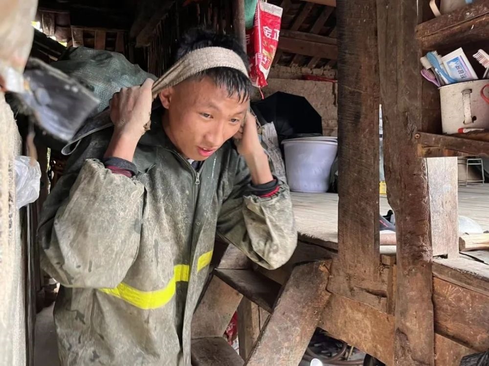 來不及脫掉被泥垢包裹的雨衣