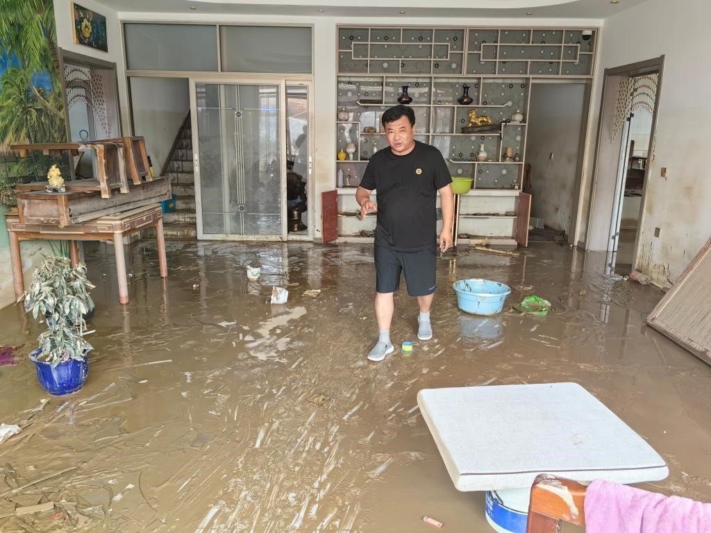 望海莊村艷天綜合商店門前,村民楊立新和趕來幫忙的親戚朋友正在一起整理受損貨品,這個村里最大的超市此次受災(zāi)較重?!皳p失不少,但我們不能光等著,先把能搶救的搶救出來,能收拾的都收拾干凈,盡己所能先恢復(fù)?!睏盍⑿抡f。
