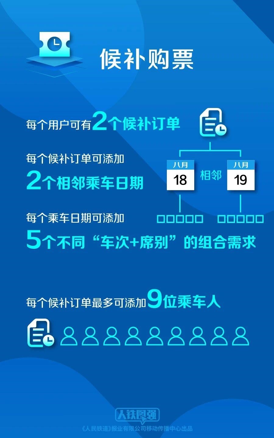 目前,旅客每天可提交發(fā)到站相同或同城不同車站的兩個相鄰日期候補車票,從以前的各2張增加到各5張。