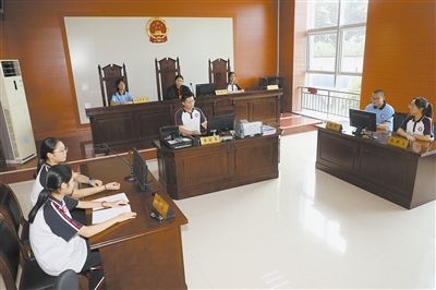 “現(xiàn)在開庭……”隨著審判員敲響法槌,庭審拉開帷幕,學(xué)生們在旁聽席上“零距離”感受庭審,對(duì)庭審流程及程序有了直觀的了解。
