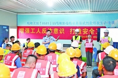 浙江杭州民警為外來(lái)務(wù)工人員講解防范電信網(wǎng)絡(luò)詐騙知識(shí)。新華社發(fā)
