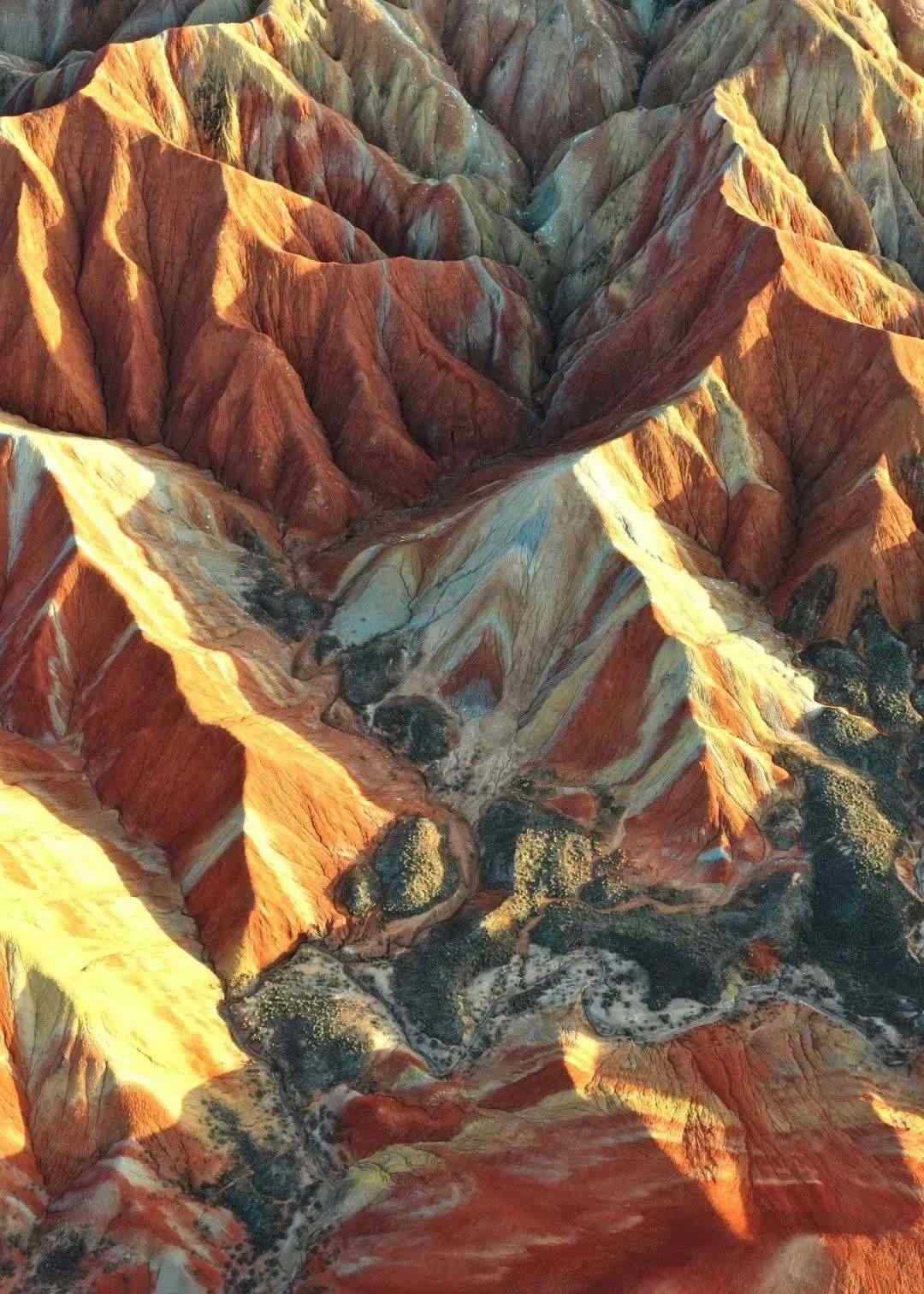 據(jù)了解,該景區(qū)內(nèi)的丹霞地貌形成于侏羅紀白堊紀時期,表面由細砂巖和泥質(zhì)巖構(gòu)成。經(jīng)專家研究考證,彩色丘陵地層的形成和誕生是以百萬年為地貌單元,是不可再生、不可復(fù)制的地質(zhì)遺跡。