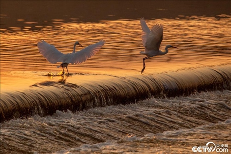 金秋時節(jié),山東淄博,桓臺縣勝利河水域,鷺舞翩躚。