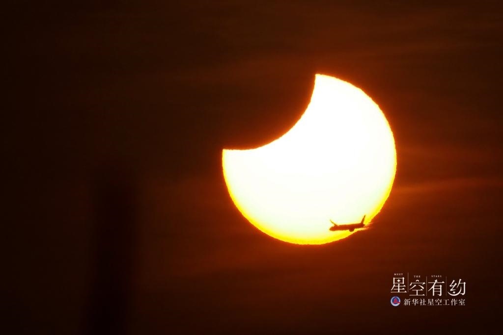 2023年4月20日出現(xiàn)在印度尼西亞雅加達(dá)上空的日食景觀。新華社發(fā)(祖卡南攝)
