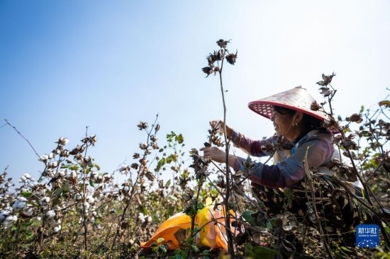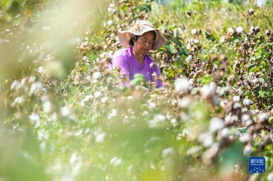 10月15日,棉農(nóng)在南縣浪拔湖鎮(zhèn)太陽(yáng)山村采收棉花。