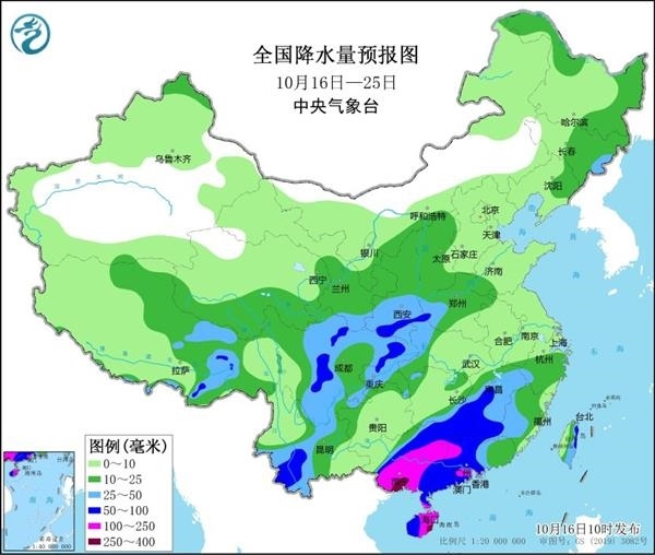 19日以后,隨著冷空氣南下,降水區(qū)域也將擴(kuò)展到江南、華南等地。值得注意的是,華南地區(qū)由于水汽更充沛,再加上熱帶擾動(dòng)影響,將成為強(qiáng)降雨中心。特別是廣西,暴雨或大暴雨將持續(xù)3至4天,這在常年10月中旬相當(dāng)少見(jiàn),當(dāng)?shù)匦枳⒁夥婪冻掷m(xù)強(qiáng)降雨可能引發(fā)的次生災(zāi)害。