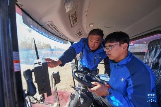 10月19日,在中國科學(xué)院“黑土糧倉”科技會戰(zhàn)長春示范區(qū)公主嶺示范基地,中國科學(xué)院東北地理與農(nóng)業(yè)生態(tài)研究所高級工程師陳國雙(左)與團隊成員調(diào)試無人駕駛農(nóng)機。