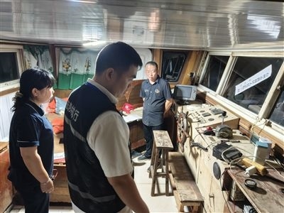 圖⑤:溫嶺市人民法院石陳人民法庭執(zhí)行干警向漁民詢問被執(zhí)行人信息。資料圖片
