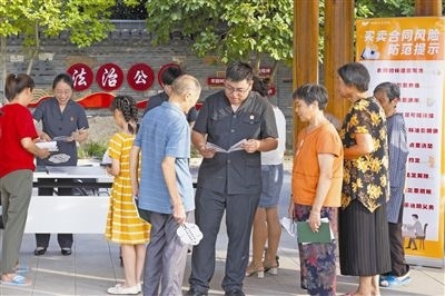 圖⑧:送法入村。圖為楓橋法庭通過設(shè)立“糾紛移動普法站”,來到轄區(qū)各村鎮(zhèn)普法宣傳,送上普法小手冊,提醒村民用好法律知識,提前防范各類風(fēng)險。