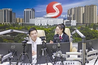 圖⑥:“云端”普法。圖為諸暨法院干警走進(jìn)諸暨市FM98.2融媒體廣播間,為線上聽眾普及法律知識,并積極宣傳新時代“楓橋經(jīng)驗”。