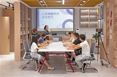 圖④:調(diào)解員培訓(xùn)。圖為楓橋法庭法官為轄區(qū)人民調(diào)解員進(jìn)行現(xiàn)場培訓(xùn),從如何提升調(diào)解工作的方法與技巧入手結(jié)合案例逐一進(jìn)行指導(dǎo)。