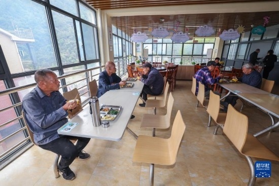 10月26日,老人們在杭州市富陽區(qū)湖源鄉(xiāng)居家養(yǎng)老服務中心就餐。