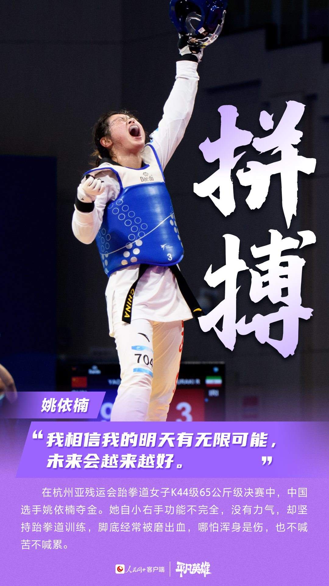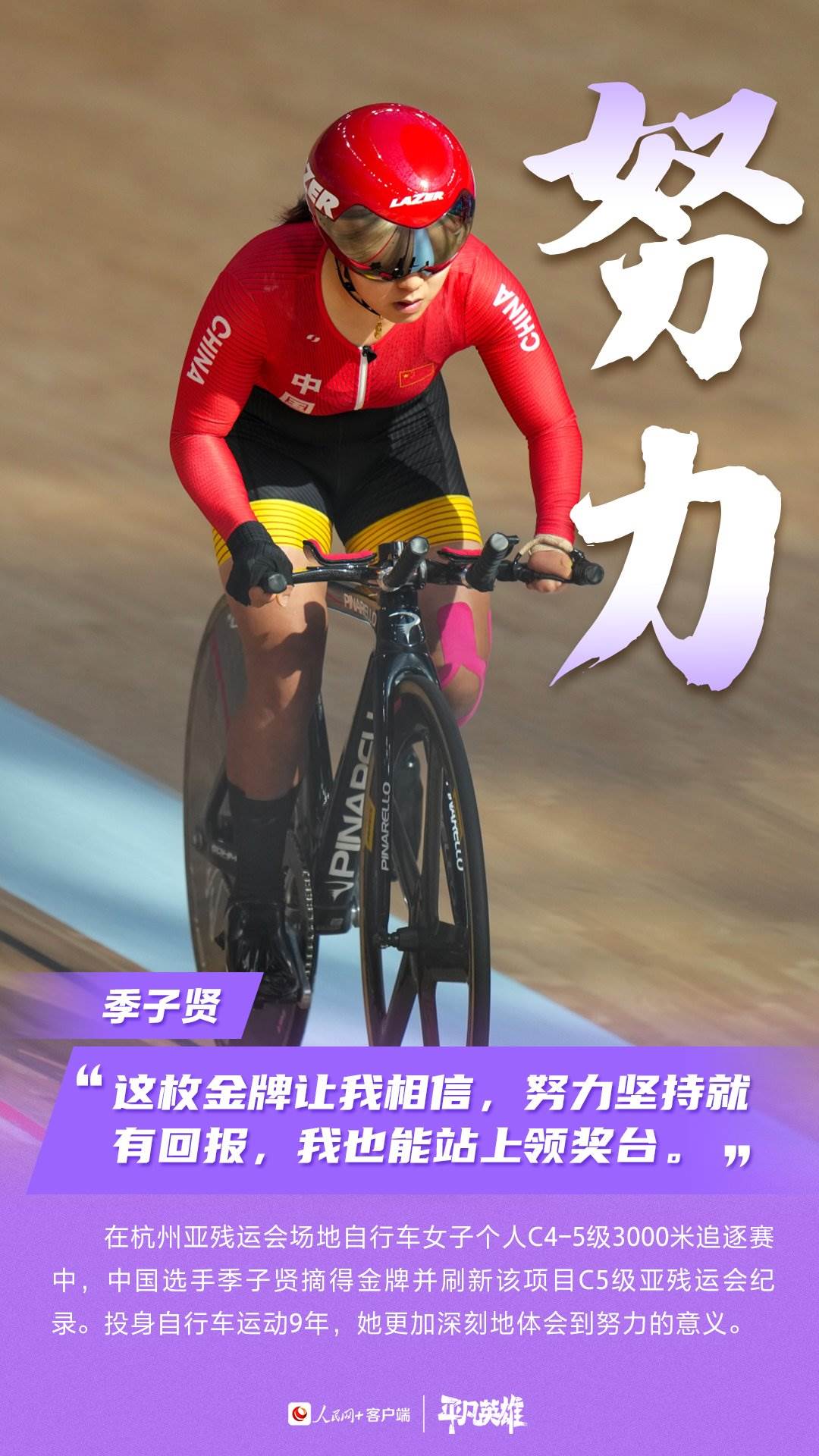 一張張寫滿堅韌的臉、一個個頑強拼搏的身軀,定格了許多震撼人心的瞬間。在杭州第4屆亞殘運會的賽場上,中國運動員用不服輸、不放棄的精神,告訴我們“沒有什么不可能”。致敬每一位運動員。