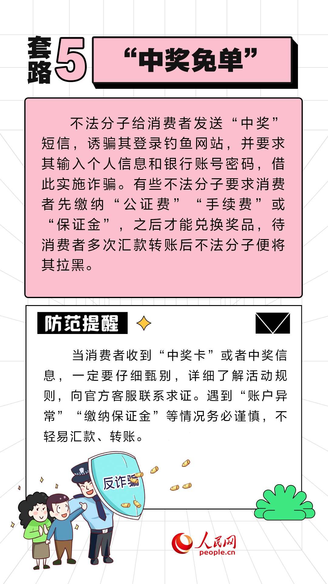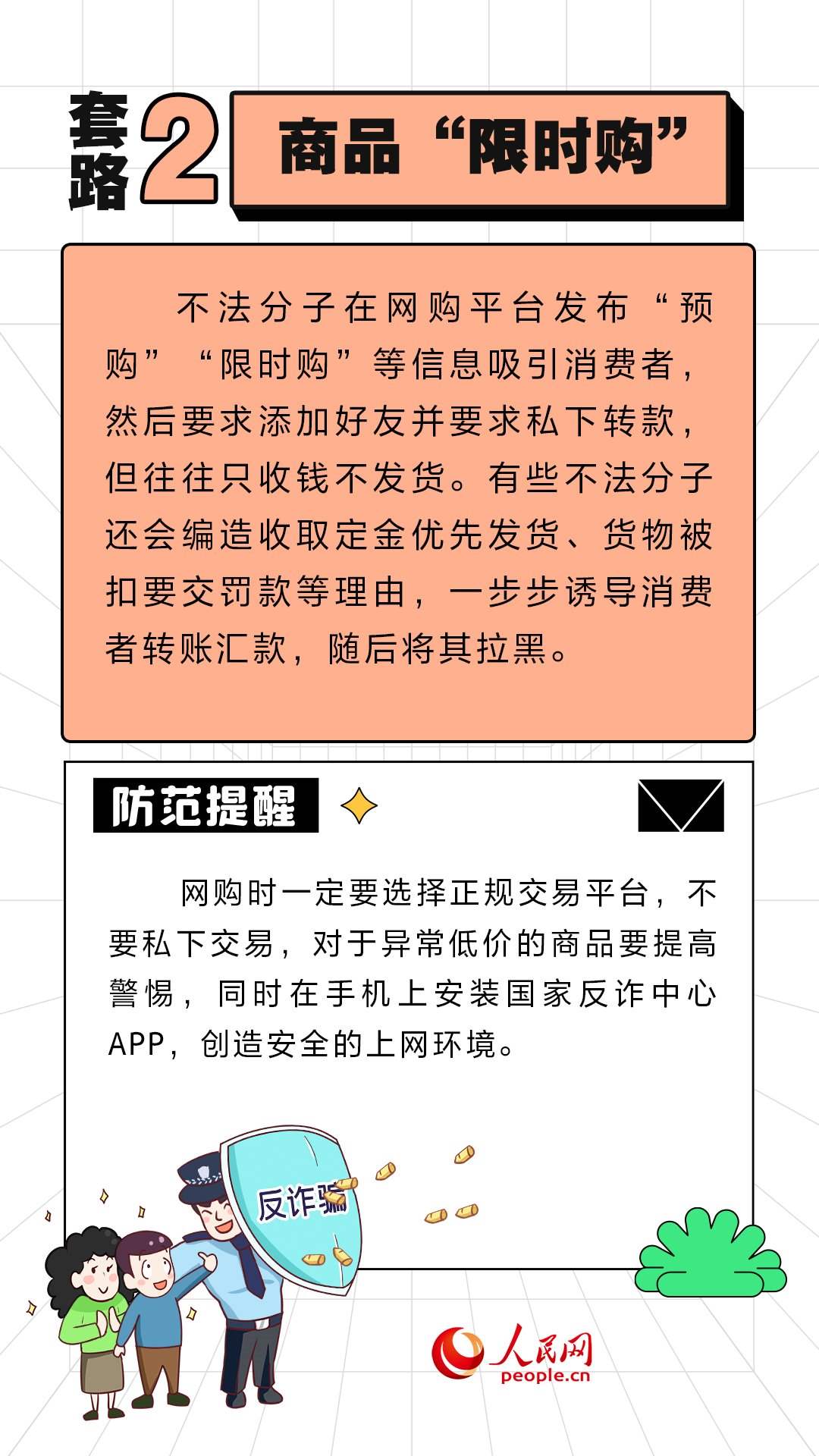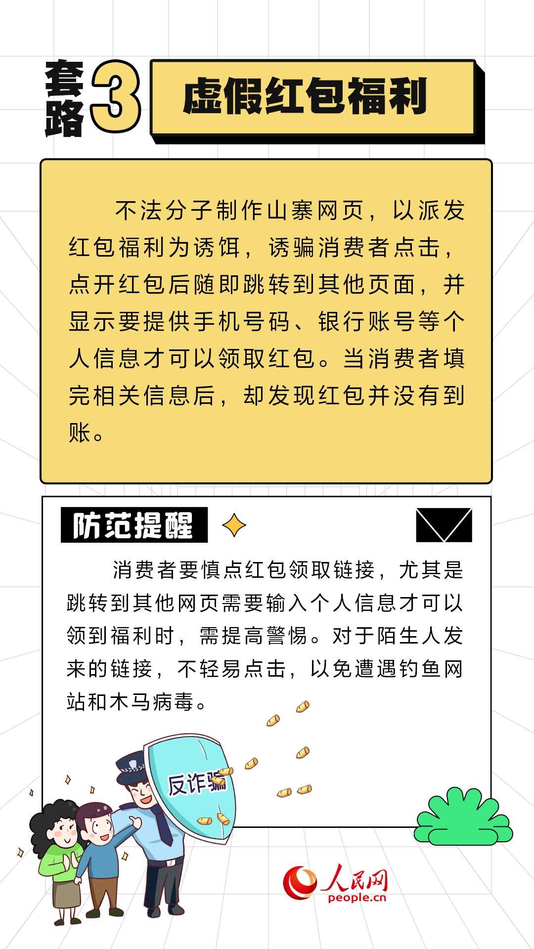 人民網(wǎng)北京11月10日電 (周靜圓)近期,“雙11”促銷(xiāo)活動(dòng)如火如荼地進(jìn)行中。不法分子也伺機(jī)而動(dòng),設(shè)置各式各樣陷阱。人民網(wǎng)“求真”欄目整理了六種常見(jiàn)的套路,提醒大家提高警惕,守好“錢(qián)袋子”。