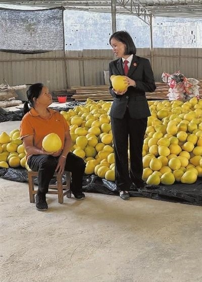 圖③:法官深入果農(nóng)家中了解沙田柚銷售情況。