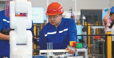 9月中旬,國(guó)家會(huì)展中心(天津),工業(yè)機(jī)器人系統(tǒng)操作賽項(xiàng)吸引了不少觀眾圍觀。來(lái)自天津機(jī)電職業(yè)技術(shù)學(xué)院的袁海亮和搭檔何琳鋒圍著一臺(tái)工業(yè)機(jī)器人忙前忙后。他們一會(huì)兒盯著電腦寫下一串串代碼,一會(huì)兒又跑到工業(yè)控制器前調(diào)整測(cè)試……很快,機(jī)器人開始揮舞雙臂,精準(zhǔn)完成自動(dòng)送料、定位抓取等動(dòng)作。