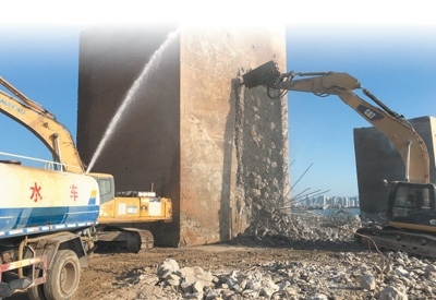 拆除工程剛啟動,便遇施工遲緩。市里隨即召集施工單位負(fù)責(zé)人,督促加緊施工。施工方也有難處,整個(gè)拆除工程總量超過600萬立方米,相當(dāng)于在海面挖出2400多個(gè)標(biāo)準(zhǔn)游泳池。一些參加拆除工程的工作人員表示:“從沒干過這么大體量的海上拆除作業(yè),僅勘察測算、設(shè)備調(diào)度就很費(fèi)周折?!?/p>