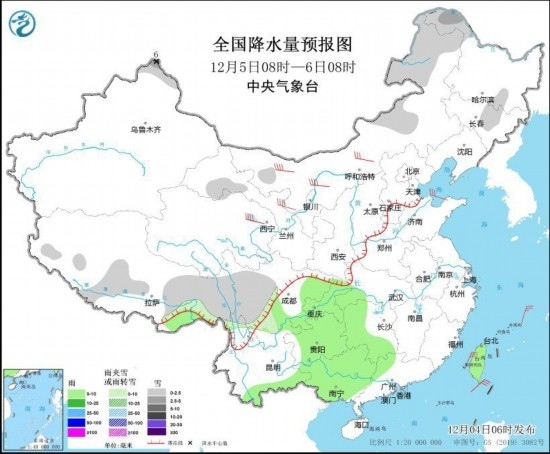 全國降水量預(yù)報圖(12月5日08時-6日08時)