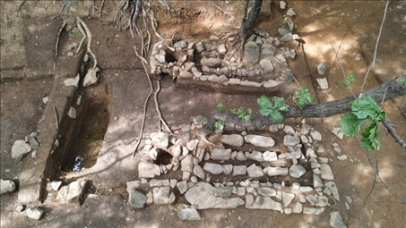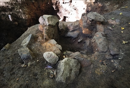 紅石砬子抗日根據(jù)地遺址,一處地窨子遺址的灶臺(tái)。新華社記者張博宇 攝