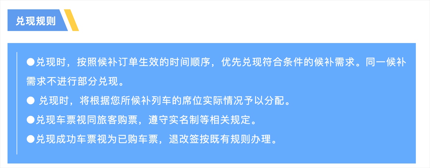 鐵路12306關(guān)于“候補(bǔ)購票訂單兌現(xiàn)”的提示