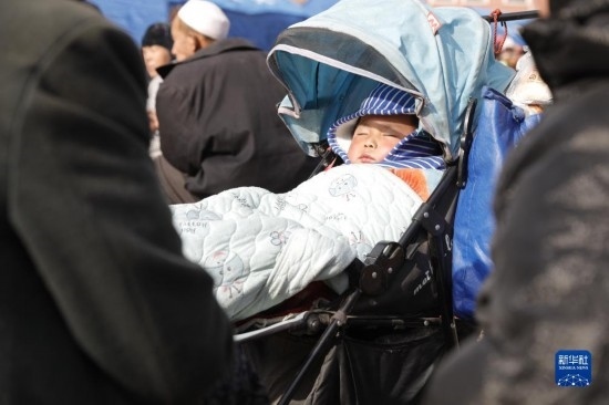 12月19日,在甘肅臨夏積石山縣大河家鎮(zhèn)大河村,小朋友在安置點(diǎn)睡午覺(jué)。