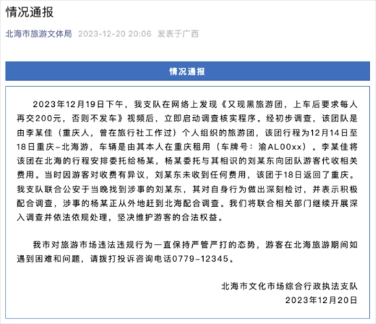 ·官方通報“廣西一旅行團(tuán)要求游客上車后每人再交200元”。